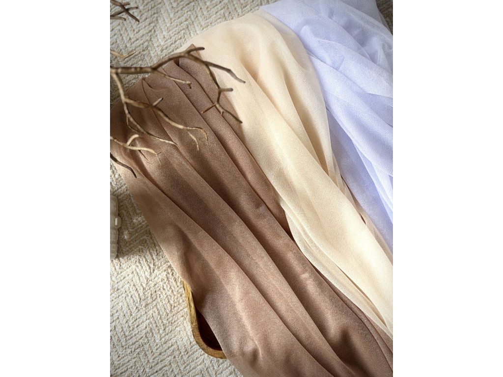 Elegantní látky v přírodních barvách. Lehce elastické, jemné, kvalitní látky. K dispozici ve třech barvách. Ivory, světle hnědá a bílá. Každá po jednom kuse, skvěle se doplňují.