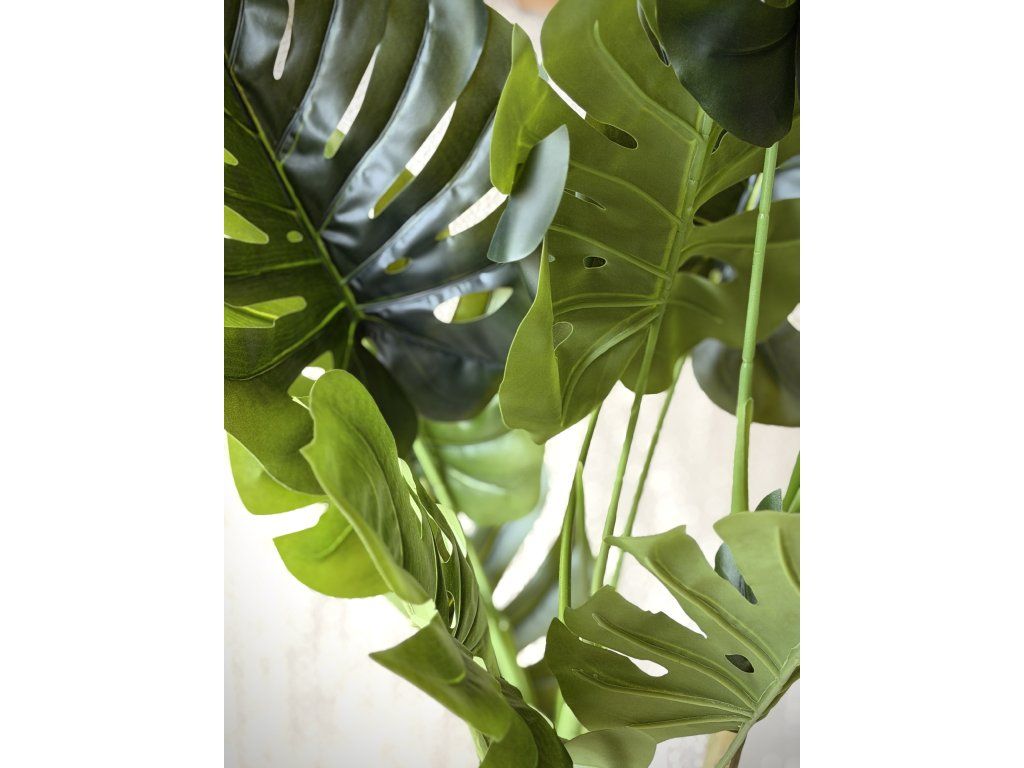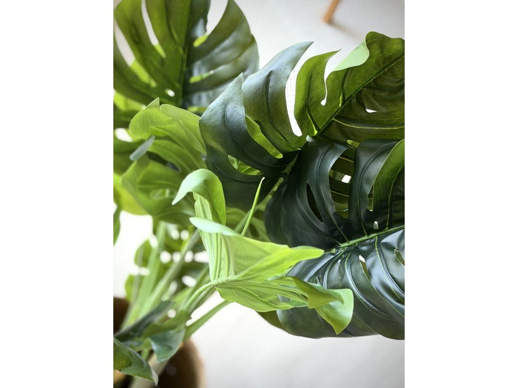 Umělá rostlina Monstera skvostná. Působí velice věrohodně. Slouží jako dekorativní prvek do interiéru. K dispozici 1ks.