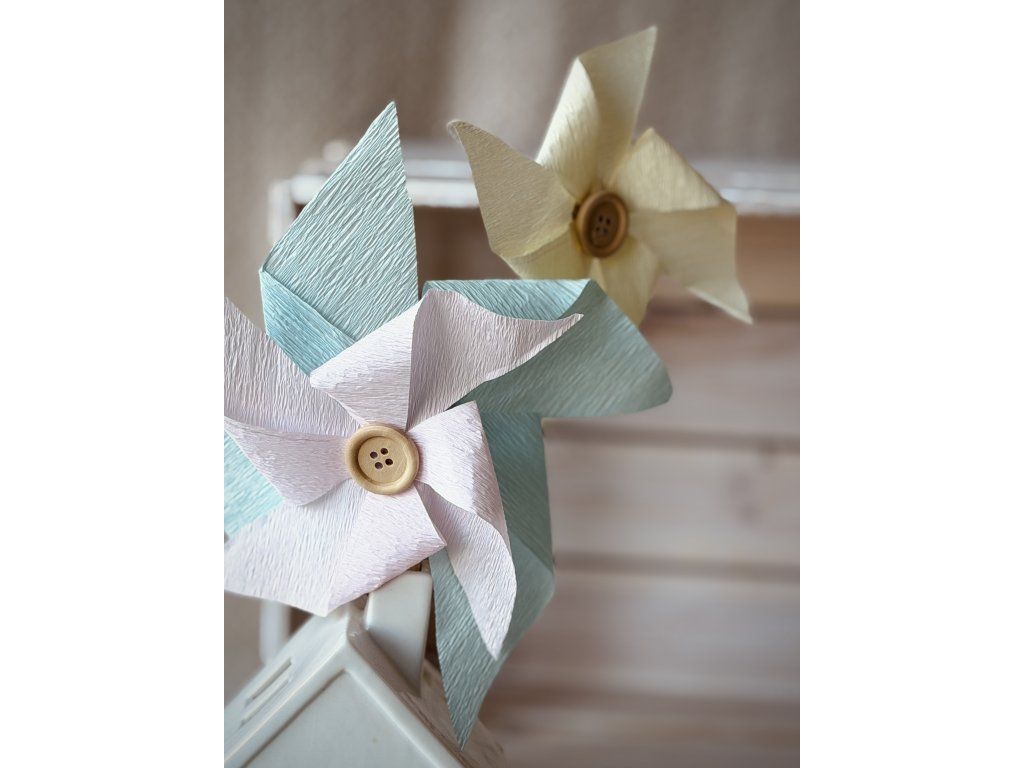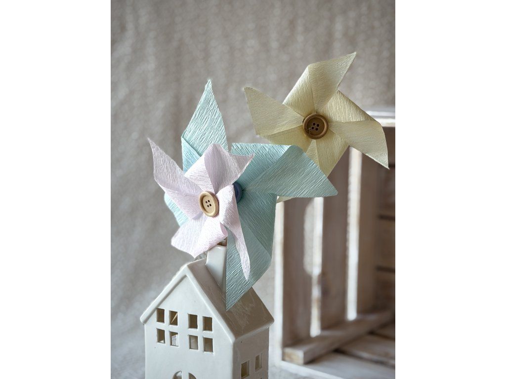Papírový větrník vlastní výroby. Větrník se neotáčí, slouží pouze jako dekorace. Na základě Vašich přání a objednávky Vám vyrobíme větrníky podle Vašich představ. Barvy a velikosti prosím uveďte do poznámky. Cenu stanovíme individuálně podle Vaší poptávky.